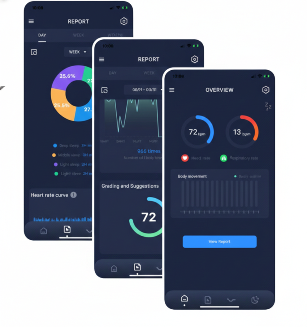 수면상태를 실시간, 일/주간/월 단위로 체크하여 리포트를 확인하거나 다양한 모션기능을 사용할 수 있습니다.
