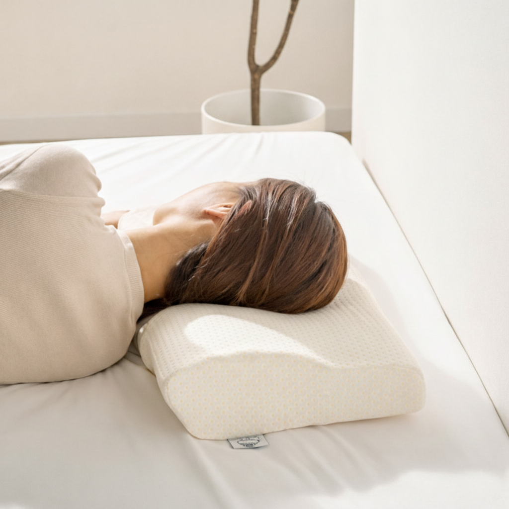 머리와 목의 라인에 따라서 메모리폼 디자인을 최적화한 폭신한 경추지지형 베개